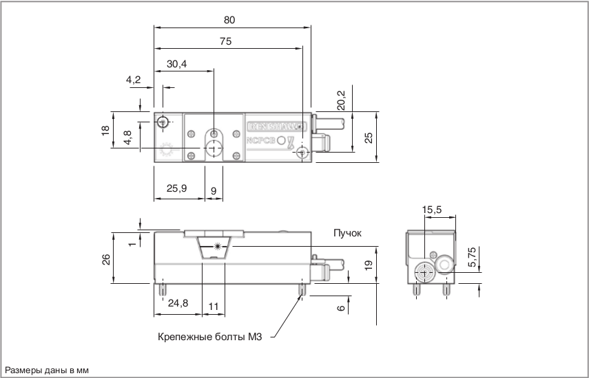 | Монтаж | Болты M3, 2 шт. | ||